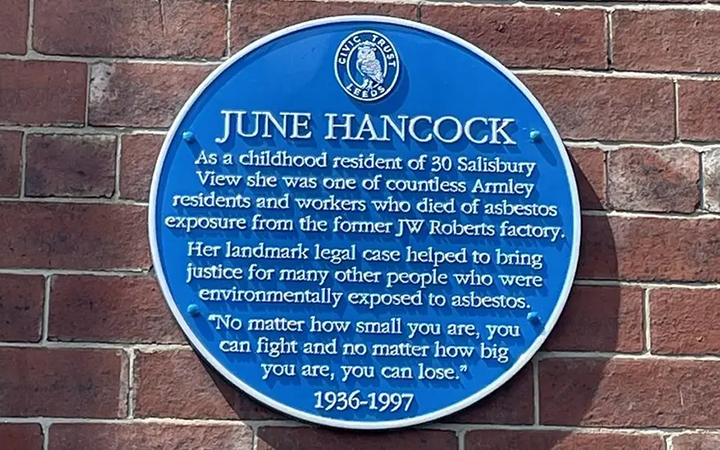 June Hancock, who campaigned tirelessly for victims of asbestos exposure has been commemorated with a blue plaque near her former home in Leeds.